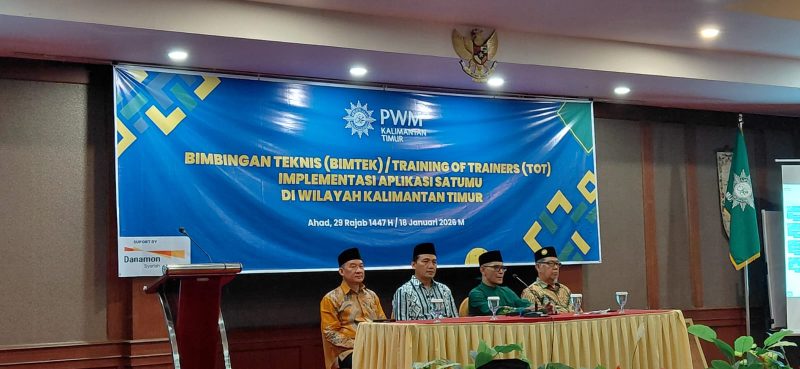 Samarinda- Pimpinan Wilayah Muhammadiyah (PWM) Kalimantan Timur menggelar Bimbingan Teknis Training of Trainer Implementasi Aplikasi SATUMU di Grand Hotel Sawit, Sabtu (18/1/2026). Kegiatan ini menandai langkah serius organisasi Islam terbesar kedua di Indonesia dalam melakukan transformasi digital.