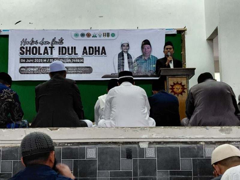 Sangatta Utara, Jum’at, 6 Juni 2025 – Mentari pagi menyinari dengan hangat Gedung BPU dan halaman Kantor Camat Sangatta Utara, menyaksikan momen sakral yang telah ditunggu umat Islam sedunia. Ribuan jamaah memadati area tersebut dalam khidmat melaksanakan Sholat Idul Adha 1446 H, sebuah perayaan yang tidak hanya menandai puncak ibadah haji, tetapi juga menjadi cerminan kebersamaan dan solidaritas umat.